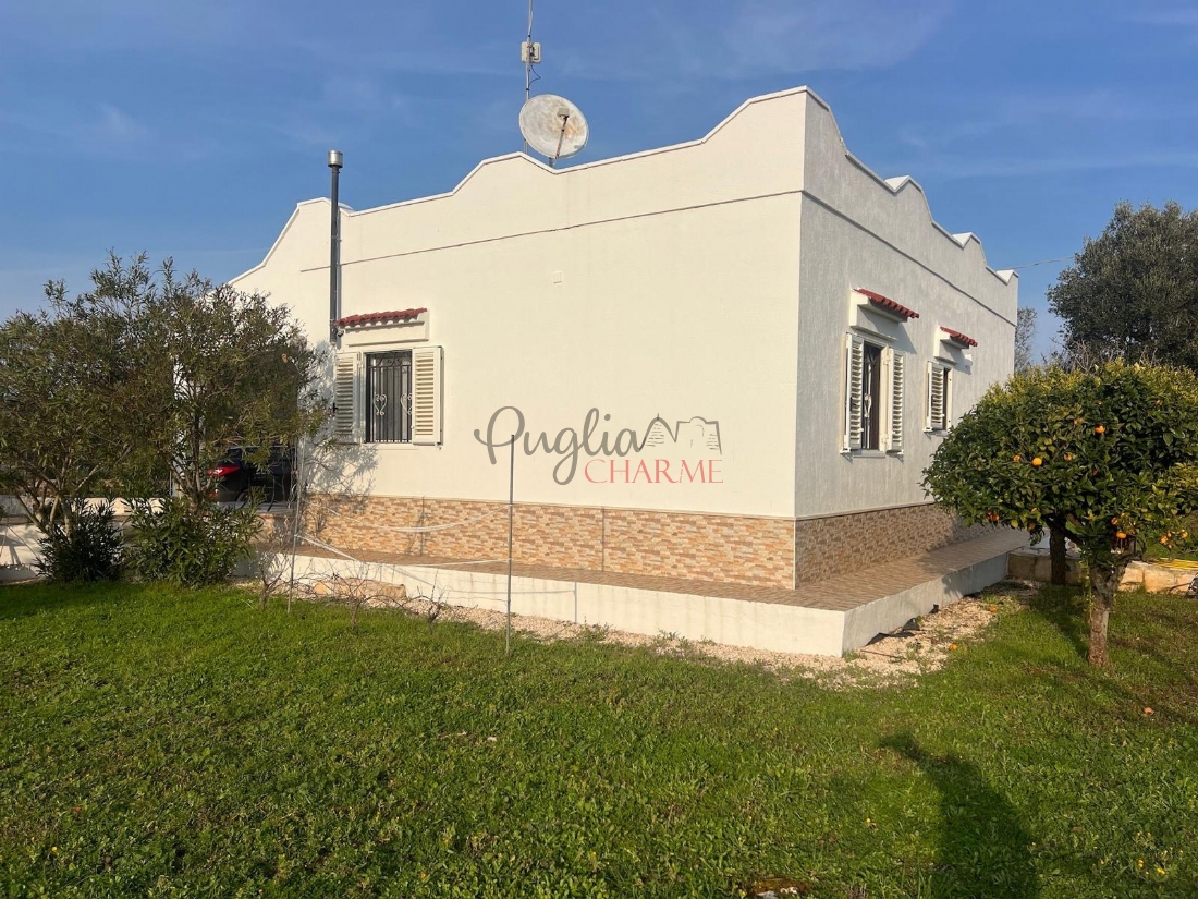 Vendesi in agro di Ostuni, bellissima villa ristrutturata finemente e di gran gusto.La villa è composta da ampia zona living con parete di tufo faccia a vista, cucina abitabile con camino, due camere da letto luminose e due bagni di cui uno padronale con doccia walk-in.Locale tecnico esternamente.Dalla porta a vetri della cucina, si accede alla veranda funzionale ideale per vivere le giornate estive all’aperto.Il terreno è di circa 4.400 mq recintato, coltivato ad uliveto, frutteto ossia: gelso bianco, melograno, fichi, agrumi, nespole, mandarino, prugna.La villa è dotata di zanzariere, inferriate, porta blindata, cancello automatico, impianto fotovoltaico con accumulatore, cisterna per l’acqua, acquedotto rurale con contatore di sottrazione, predisposizione all’allarme, le telecamere, predisposizione per la stufa a pellet.Si possono mettere i termosifoni elettrici in quanto ci sono i pannelli solari.La villa è rialzata ed è molto importante per non avere l’umidità.È possibile realizzare una piscina di massimo 40 mqPer la sua bellezza e funzionalità, la villa è ideale sua per residenza privata che per casa vacanza.
