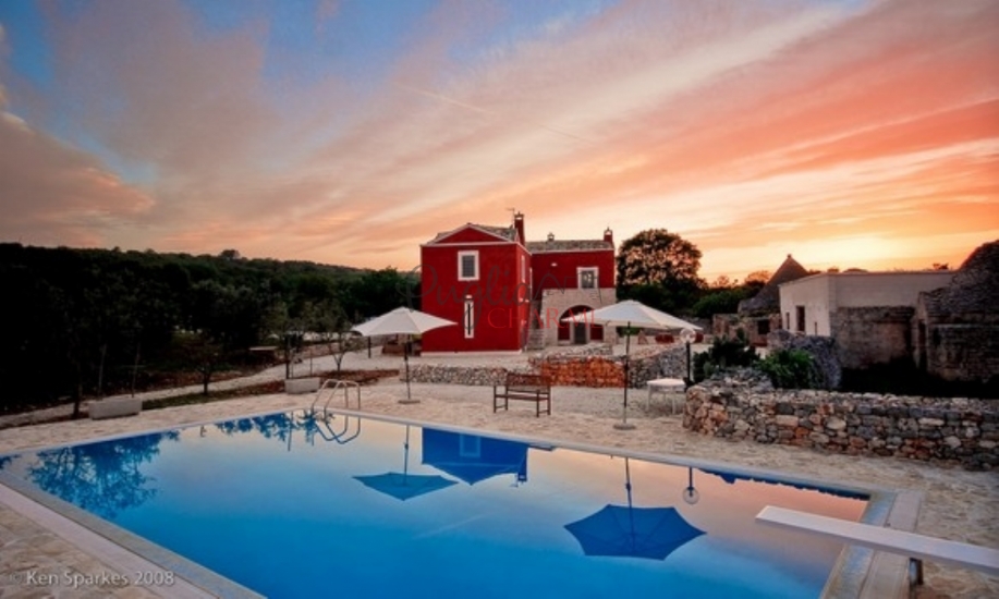 Vendesi in agro di Ceglie Messapica,antico casale ottocentesco,finemente ristrutturato con materiali di pregio.Il casale è suddiviso su due livelli,dove le volte sono a stella ed interamente in pietra a vista,da dove si scorge un panorama sulla campana e sugli alberi di ulivo.All’interno del casale,sono state lasciate intatte ed integre,le vecchie mangiatoie degli animali.Intorno al casale,vi sono dei trulli da ristrutturare con una lamia interamente in pietra.Nella proprietà vi è la piscina esterna a contatto diretto con la natura.Il terreno di pertinenza è di circa 2 ettari,coltivato ad ulivi,mandorli e frutta.Il casale è posizionato in una zona tranquilla e riservata, ideale per creare un bed and breakfast di eleganza