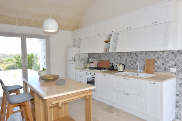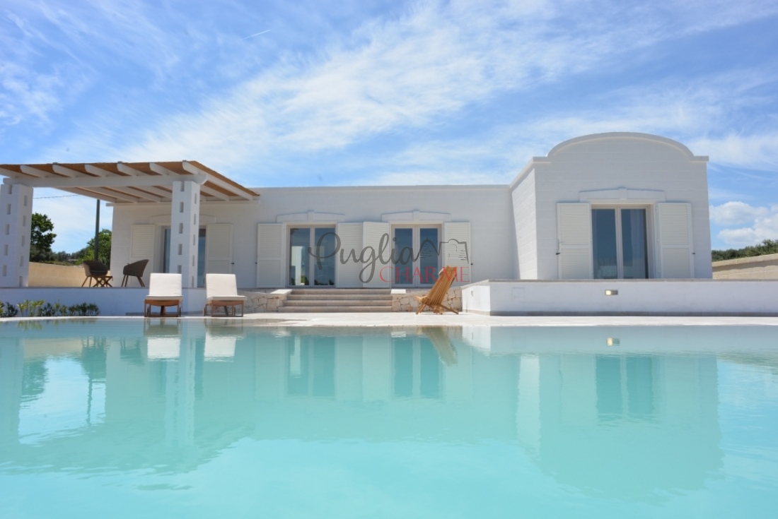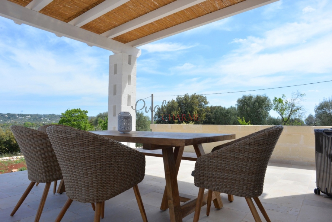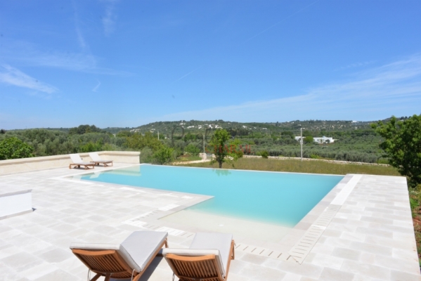 Vendesi in agro di Ostuni, bellissima villa di nuova costruzione ma in stile antico con le classiche volte a botte in tufo. La villa è composta da un'open space dove vi è ampia zona living con cucina, tre ampie camere da letto e due bagni. Nella zona living vi è un bel camino, inverter con pompa di calore per riscaldamento e aria condizionata. Il terreno è di circa 8.000 mq con tutti i muretti a secco perimetrali, coltivato ad uliveto e qualche frutta. Cancello automatico, wi-fi, parcheggio privato. La villa ha una bellissima piscina vicino alla zona relax con porticato, ideale per le belle serate d'estate con gli amici. Il contesto è un paradiso, zona tranquilla e riservata con vista panoramica. La villa è ideale per residenza privata di stile ed eleganza. Inoltre è già inserita sui circuiti internazionali di locazione con una buona rendita, ottenendo così un ottimo investimento.