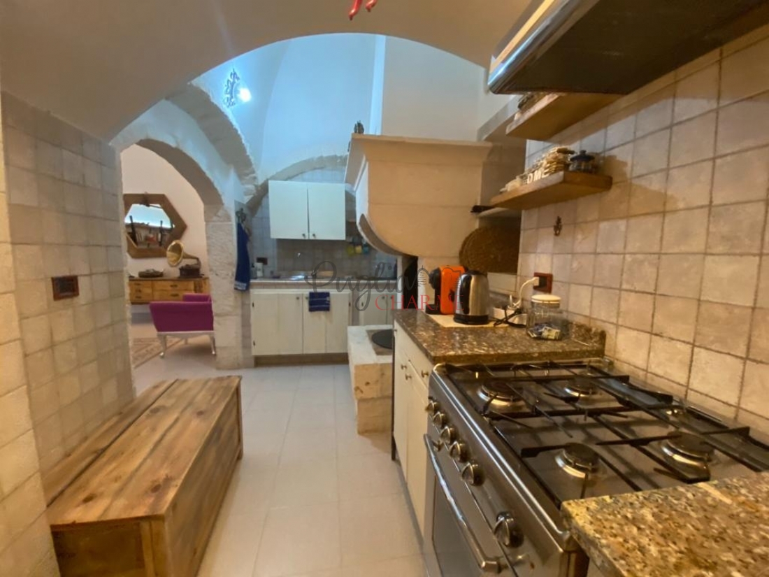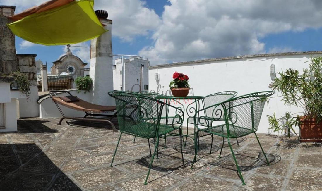Nel cuore del centro storico di Cisternino, uno dei Borghi più belli e visitati d’Italia, meta turistica per ammirare l’Architettura spontanea locale, “scorci “ di vista sulla Valle D’Itria e soprattutto per assaporare la cucina tipica. Proponiamo in vendita un palazzotto storico completamente ristrutturato usando materiale di pregio e soprattutto conservando e valorizzando l’originalità di un tempo.Il palazzotto attualmente viene utilizzato come casa vacanza di prestigio, essendo internamente suddivisa su tre piani a cui si presta. La struttura è cosi suddivisa:Piano primo troviamo un ampio soggiorno con angolo cottura in muratura e camino, sempre sullo stesso piano troviamo due camere da letto, entrambe con solaio a cielo di carrozza, il tutto servito da ampio bagno. La superficie per il primo piano è di circa 65 mq. Saliti al secondo piano tramite scala in pietra, troviamo un unico grande ambiente dove è stato realizzato un soggiorno con cucina il tutto all’interno di una sala con volte a botte, in adiacenza allo stesso abbiamo una camera da letto molto grande con bagno, per una metratura complessiva di circa 50 mq. Infine all’ultimo piano troviamo una delle parti più chic della struttura, la terrazza panoramica di circa 40 mq con affaccio sulla piazza centrale del centro storico, la quale permette di godere di un ottima zona relax per la colazione con vista panoramica. L’immobile usufruisce di tutti i servizi utili di città come allaccio all’acquedotto, riscaldamento a gas ed impianto fognario. L'immobile viene venduto parzialmente arredato.