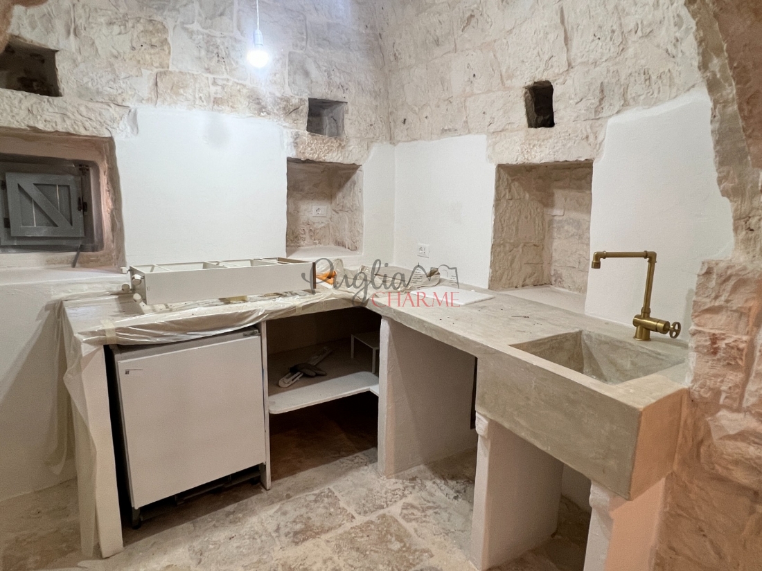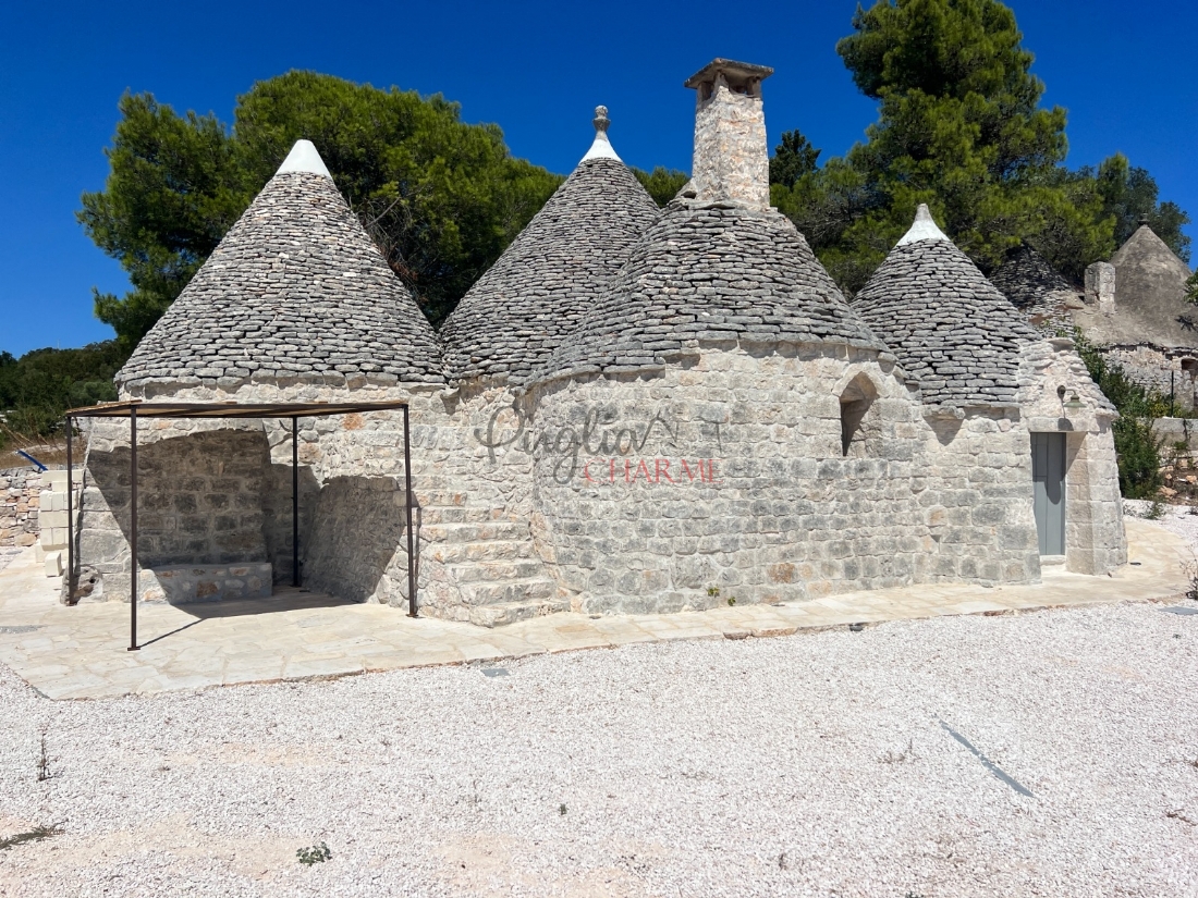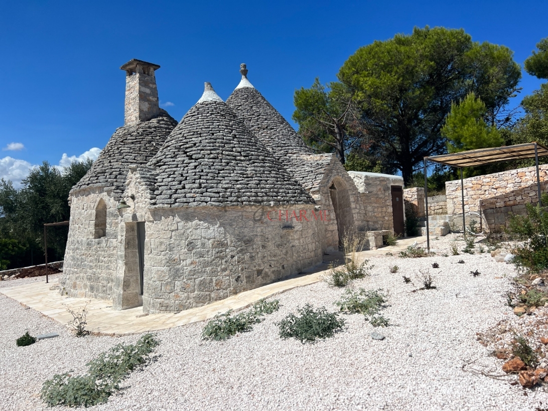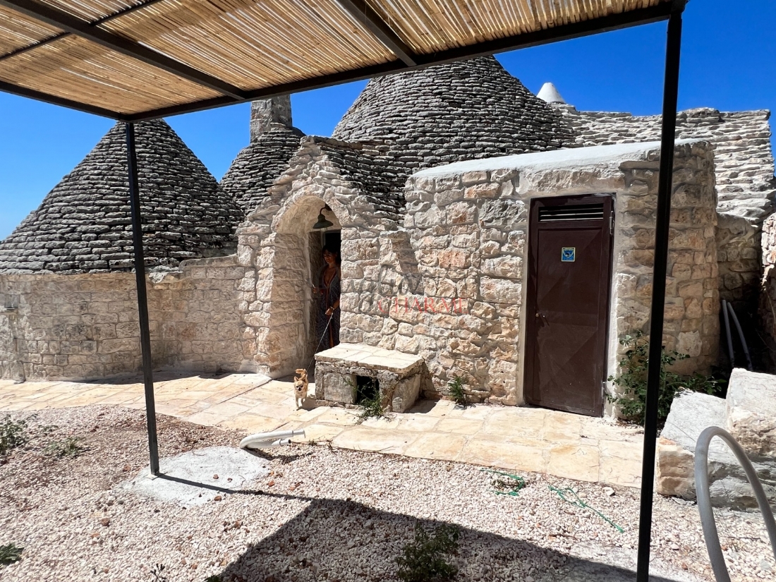 In zona panoramica, con vista mozzafiato, proponiamo in vendita un grazioso complesso di trulli. L’immobile, di recente ristrutturazione interna , è composto da un ingresso-soggiorno , cucina in muratura, 2 camere da letto e bagno e vano lavanderia/ caldaia. Antistante troviamo ampio spiazzo dove poterlo attrezzare con un bel patio o creare anche un ‘aerea parcheggio. Servizi. Allacciato acquedotto pugliese, fossa imhoff, riscaldamento a pavimento. Terreno di pertinenza di circa mq 2.000 tutto terrazzato con vista meravigliosa.