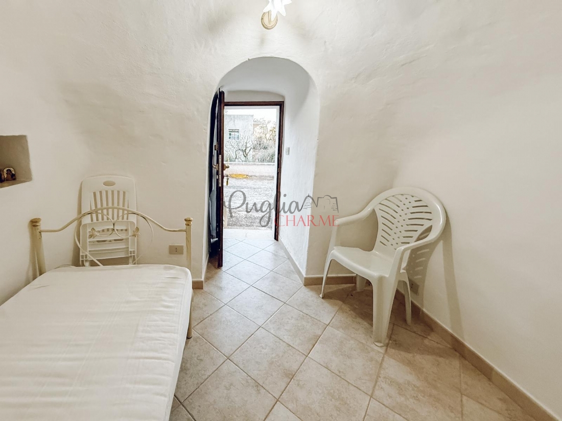 Vendesi in agro di Cisternino, a pochi passi dal centro, una deliziosa abitazione con trullo. L’immobile è composto da una zona giorno accogliente con camino, una camera matrimoniale e un bagno. Adiacente alla casa, ma separato internamente, troviamo un piccolo trullo ristrutturato che ospita una cameretta con bagno privato. L’abitazione dispone di un ampio piazzale antistante e di un forno a legna, terreno di circa 3.000 mq piantumato da ulivi . Cisterna, acquedotto di città e possibilità di allacciarsi al metano. Questa proprietà si presta perfettamente sia per una struttura ricettiva che per un uso residenziale, grazie alla sua posizione strategica e al fascino del trullo.
