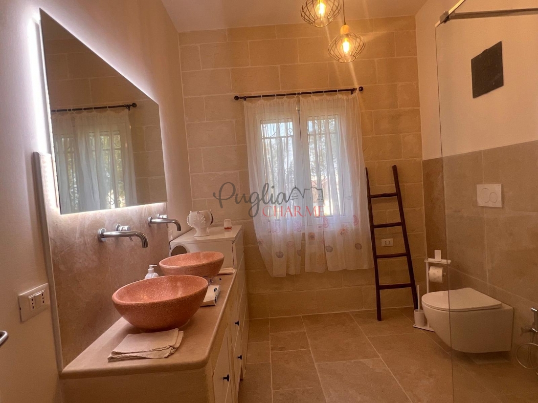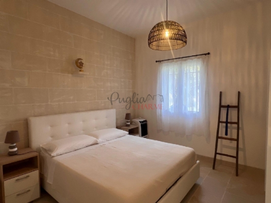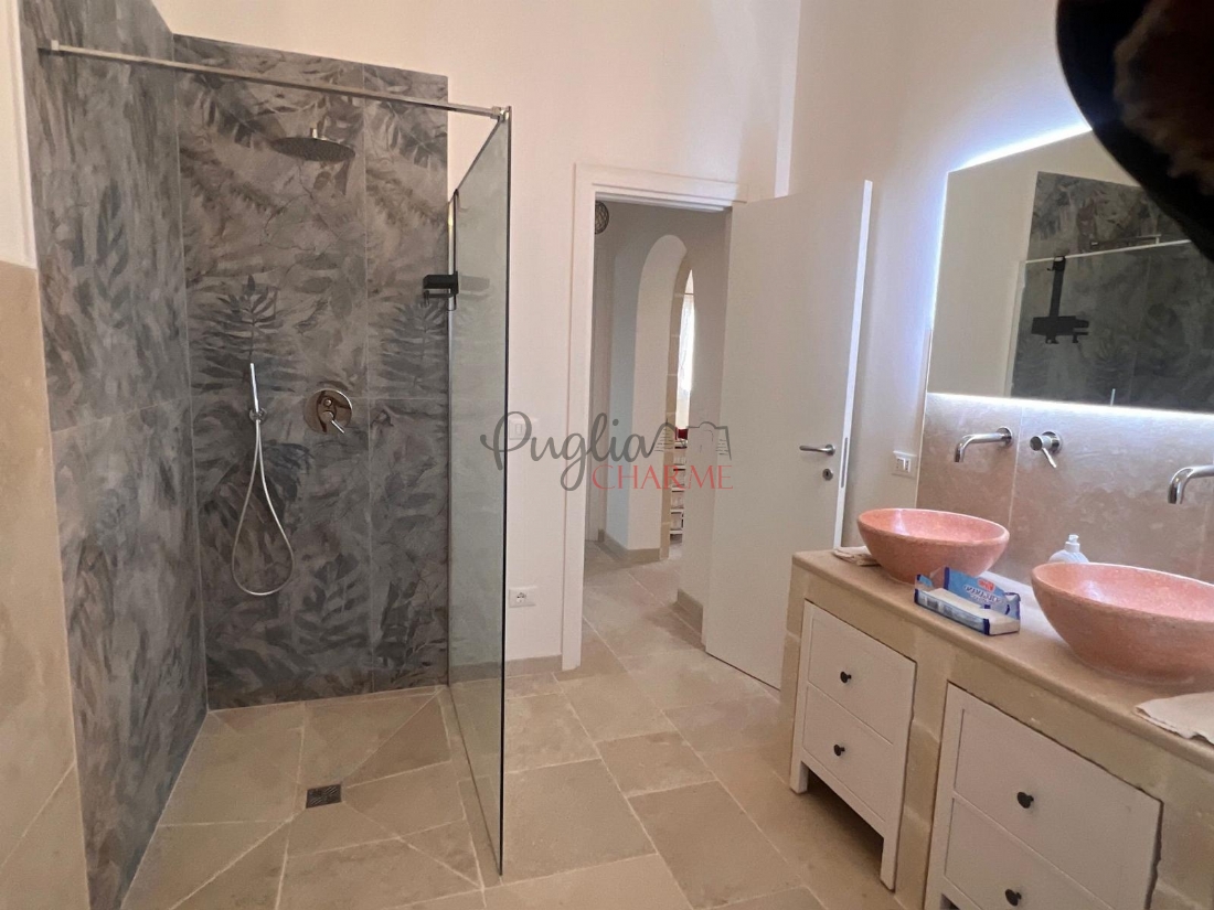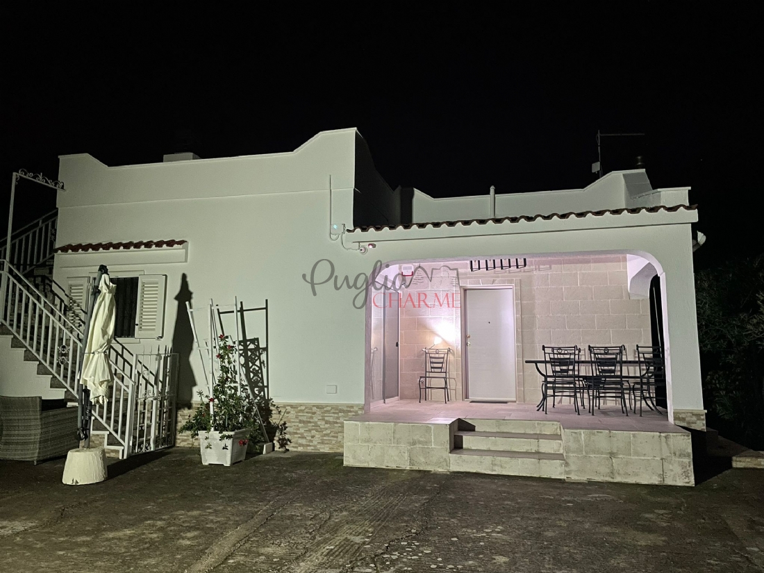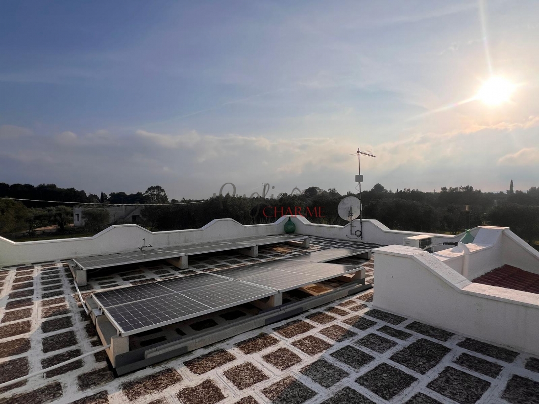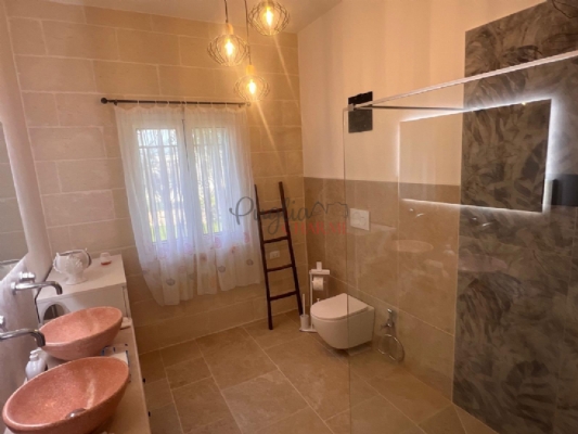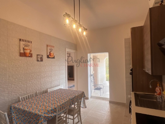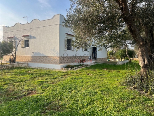 Vendesi in agro di Ostuni, bellissima villa ristrutturata finemente e di gran gusto.La villa è composta da ampia zona living con parete di tufo faccia a vista, cucina abitabile con camino, due camere da letto luminose e due bagni di cui uno padronale con doccia walk-in.Locale tecnico esternamente.Dalla porta a vetri della cucina, si accede alla veranda funzionale ideale per vivere le giornate estive all’aperto.Il terreno è di circa 4.400 mq recintato, coltivato ad uliveto, frutteto ossia: gelso bianco, melograno, fichi, agrumi, nespole, mandarino, prugna.La villa è dotata di zanzariere, inferriate, porta blindata, cancello automatico, impianto fotovoltaico con accumulatore, cisterna per l’acqua, acquedotto rurale con contatore di sottrazione, predisposizione all’allarme, le telecamere, predisposizione per la stufa a pellet.Si possono mettere i termosifoni elettrici in quanto ci sono i pannelli solari.La villa è rialzata ed è molto importante per non avere l’umidità.È possibile realizzare una piscina di massimo 40 mqPer la sua bellezza e funzionalità, la villa è ideale sua per residenza privata che per casa vacanza.