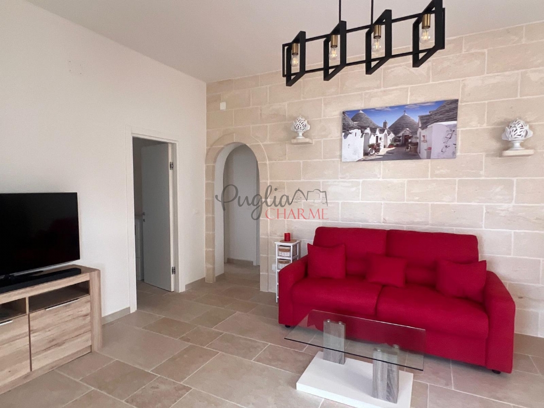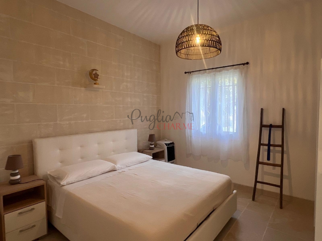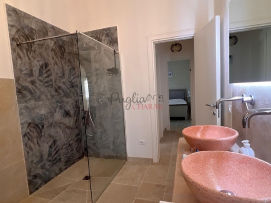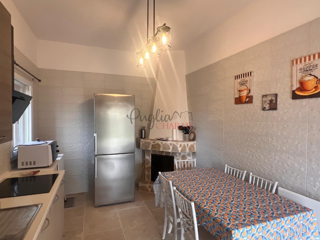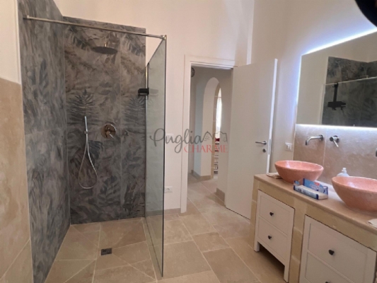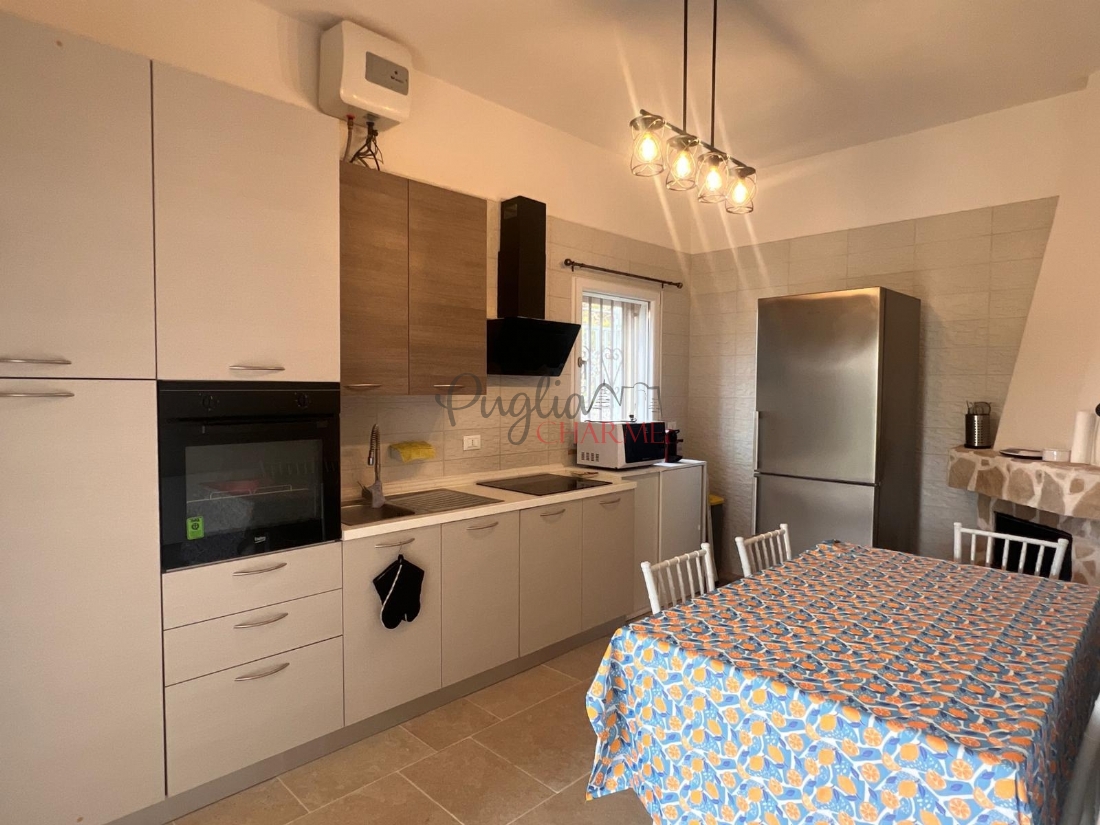 Vendesi in agro di Ostuni, bellissima villa ristrutturata finemente e di gran gusto.La villa è composta da ampia zona living con parete di tufo faccia a vista, cucina abitabile con camino, due camere da letto luminose e due bagni di cui uno padronale con doccia walk-in.Locale tecnico esternamente.Dalla porta a vetri della cucina, si accede alla veranda funzionale ideale per vivere le giornate estive all’aperto.Il terreno è di circa 4.400 mq recintato, coltivato ad uliveto, frutteto ossia: gelso bianco, melograno, fichi, agrumi, nespole, mandarino, prugna.La villa è dotata di zanzariere, inferriate, porta blindata, cancello automatico, impianto fotovoltaico con accumulatore, cisterna per l’acqua, acquedotto rurale con contatore di sottrazione, predisposizione all’allarme, le telecamere, predisposizione per la stufa a pellet.Si possono mettere i termosifoni elettrici in quanto ci sono i pannelli solari.La villa è rialzata ed è molto importante per non avere l’umidità.È possibile realizzare una piscina di massimo 40 mqPer la sua bellezza e funzionalità, la villa è ideale sua per residenza privata che per casa vacanza.