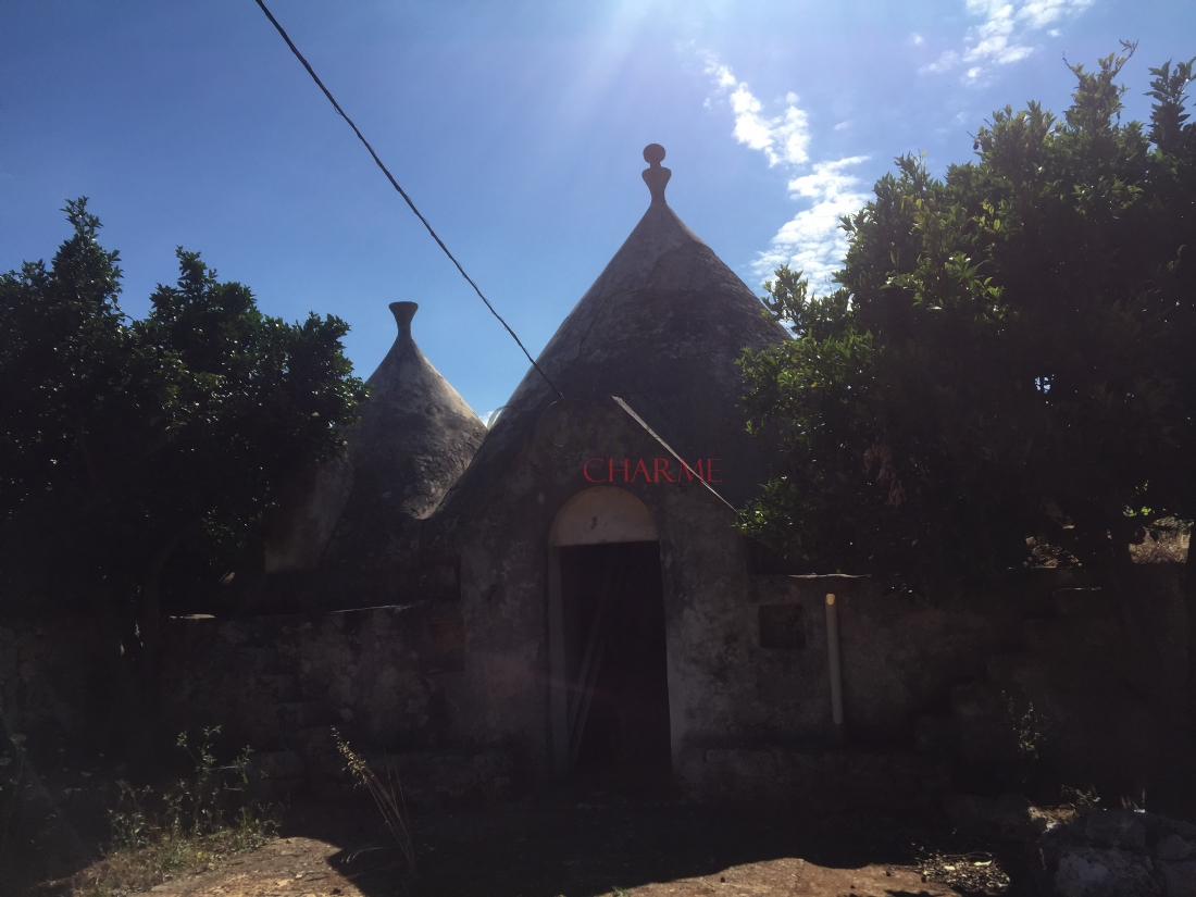 Vendesi in agro di Ceglie Mesapica, bel complesso di trulli da ristrutturare, con all’interno ed all’esterno, pavimento in chianche, pietra tipica ed originale del territorio. I trulli sono composti da vai ambienti e corti per gli animali. Il terreno è di circa 14000 mq coltivato ad uliveto, mandorleto e frutteto. I trulli hanno la luce elettrica. E’ possibile ampliare e costruire una piscina a contatto diretto con la natura. I trulli sono posizionati in una zona tranquilla e riservata, ideale sia per residenza privata che per casa vacanza.
