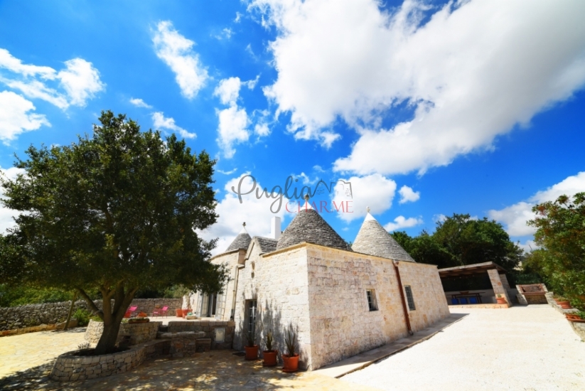 Vendesi in agro di Ostuni, bellissimo complesso di trulli con ampliamento ristrutturati finemente ed in maniera originale e naturale. La proprietà è suddivisa su due livelli. La parte a trulli composta da ampia zona living con camino, cucina a vista, area relax, tre camere da letto e due bagni.