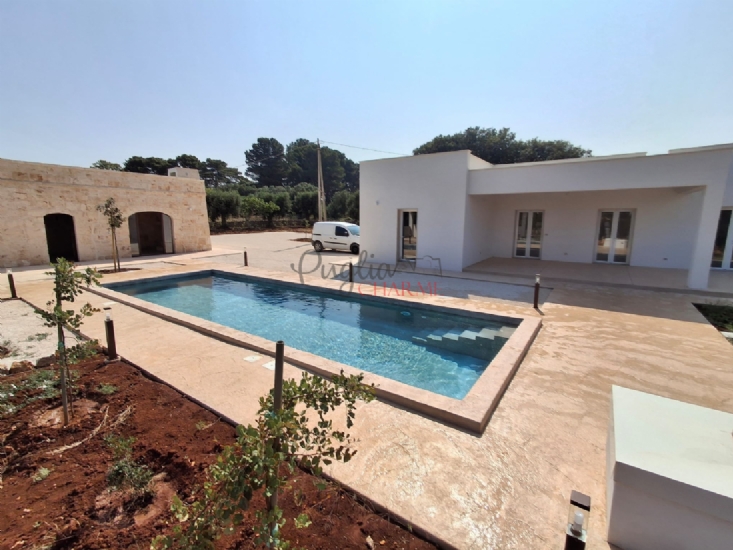 Vendesi in agro di Ostuni, bellissima villa con piscina posizionata in una zona tranquilla e riservata.La villa padronale è composta da zona living con cucina, tre camere da letto, due bagni.Esternamente abbiamo un bel casolare in pietra che può essere adibita a depandance.Il terreno è di circa 12.000 mq coltivato ad uliveto e qualche frutteto.La parte esterna ha anche una bella area relax e pergolato per vivere all’esterno.La proprietà è ideale sua per residenza privata che per attività di casa vacanza di stile e charme.